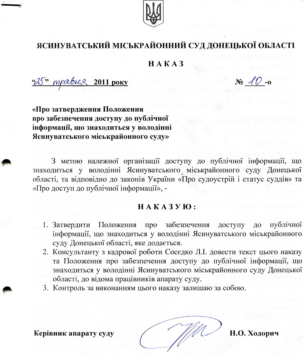Положення про порядок організації доступу до публічної інформації, що знаходиться у володінні суду