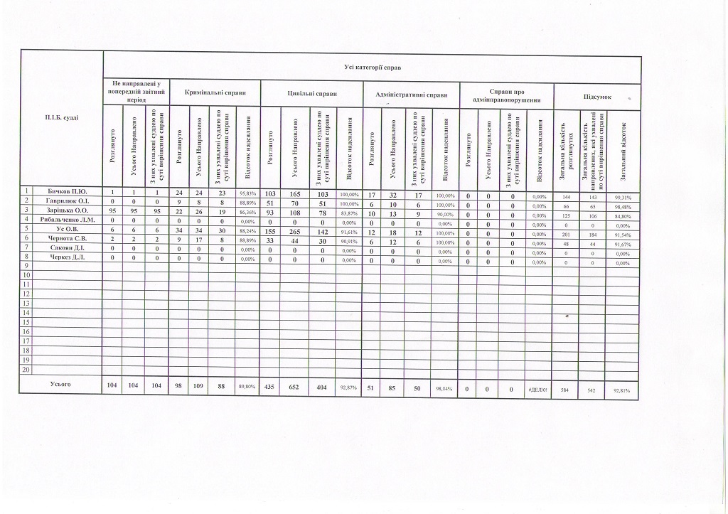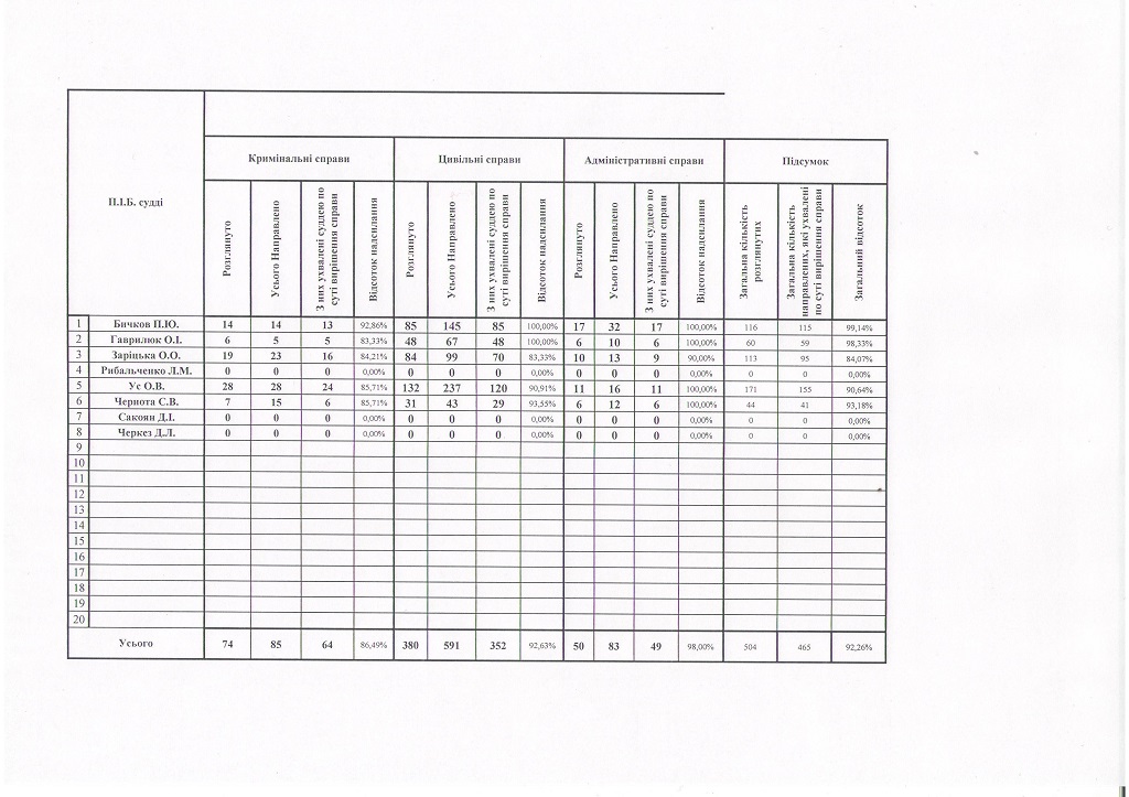 Показники діяльності суду за півріччя та рік
