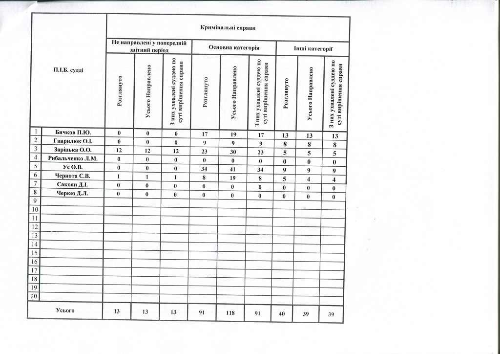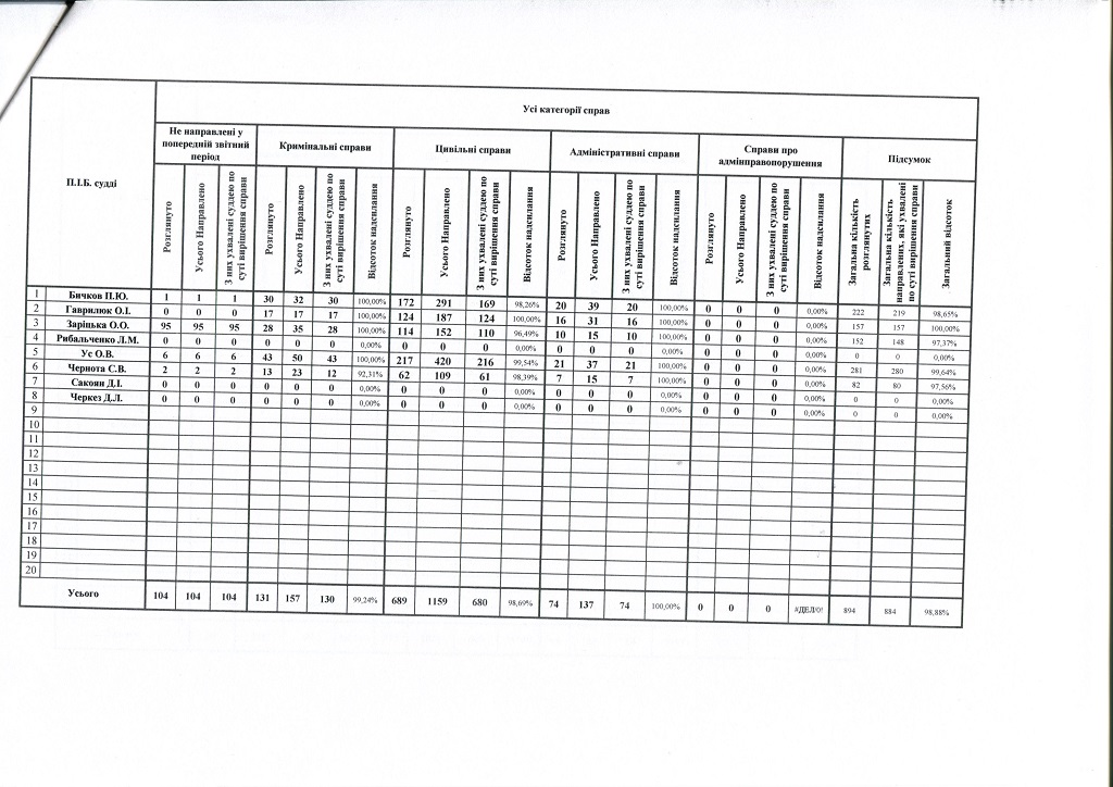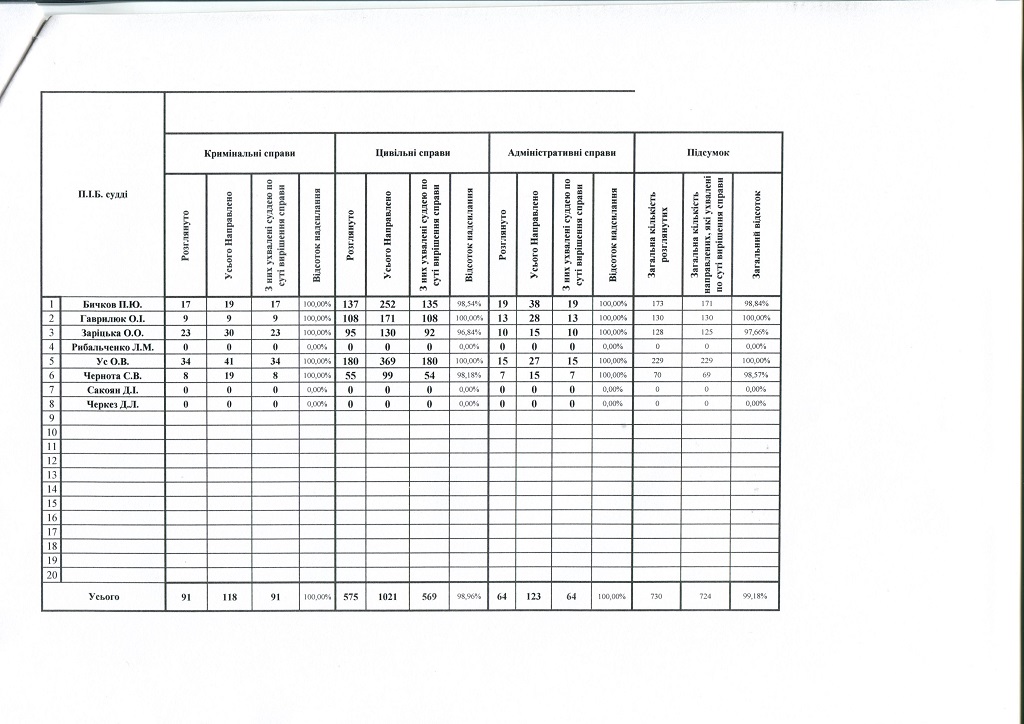 Показники діяльності суду за півріччя та рік