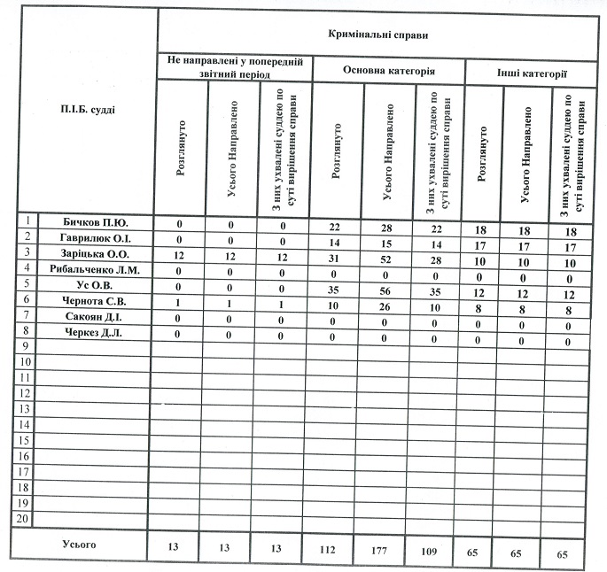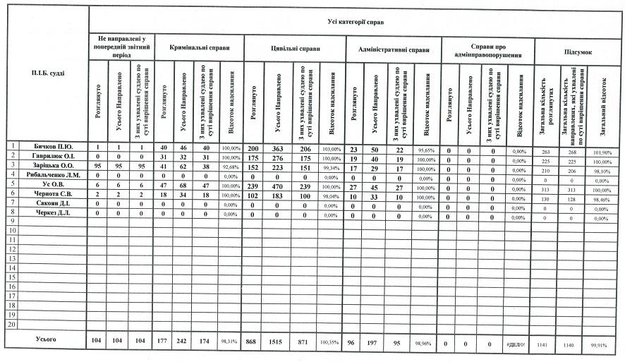 Показники діяльності суду за півріччя та рік