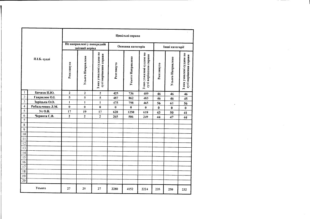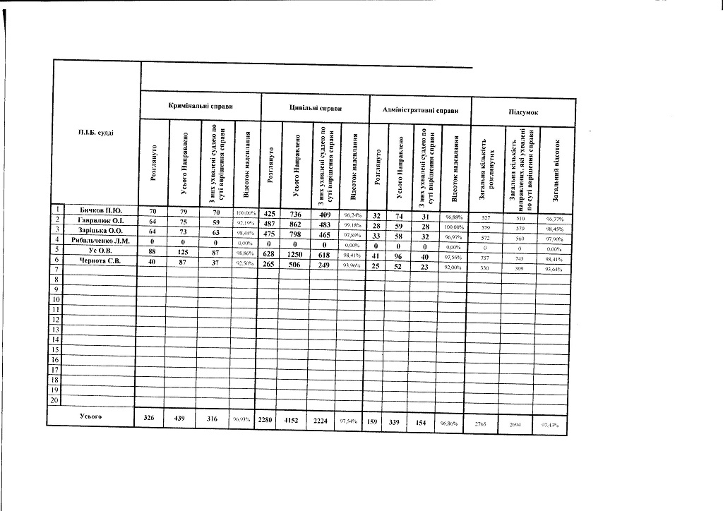Показники діяльності суду за півріччя та рік