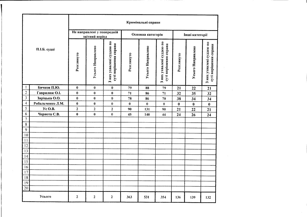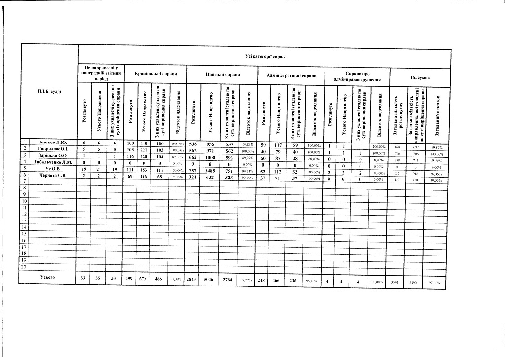 Показники діяльності суду за півріччя та рік