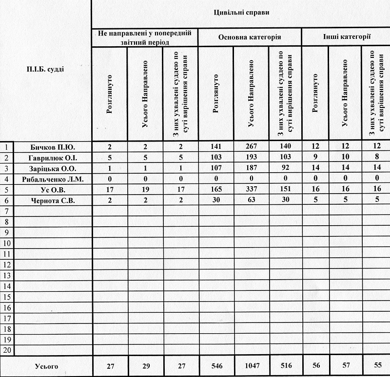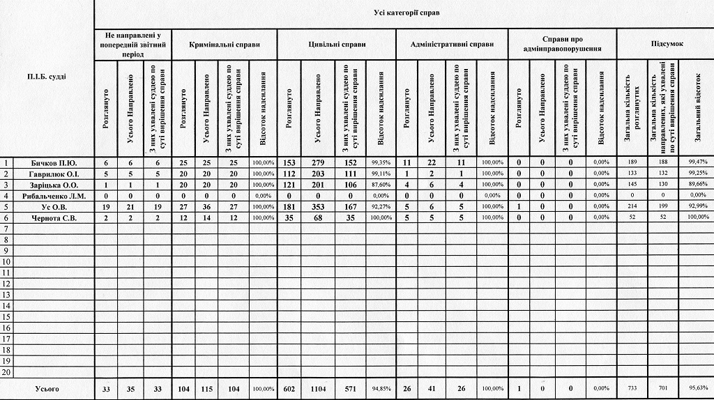 Показники діяльності суду за півріччя та рік