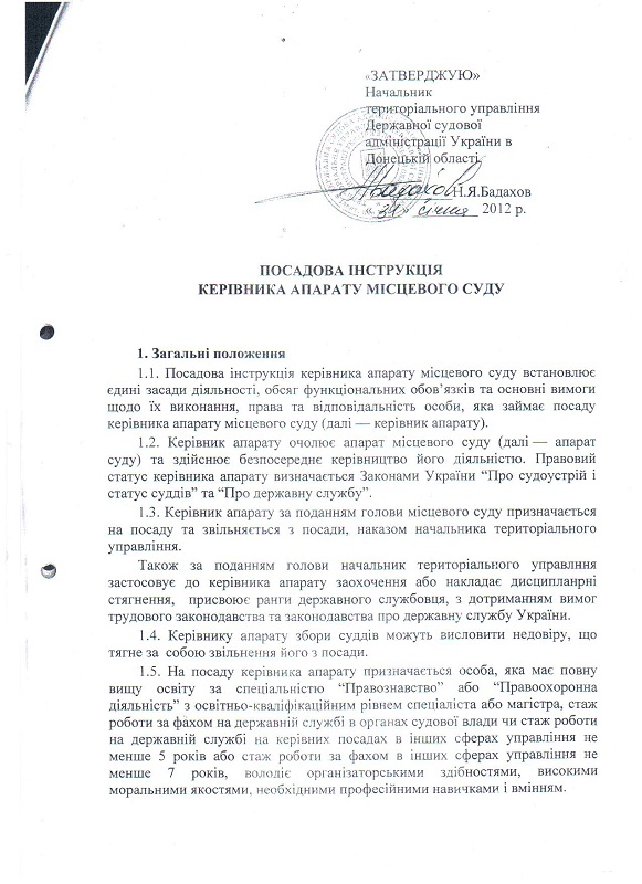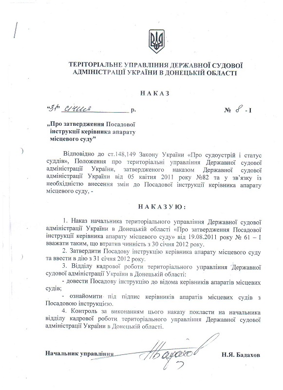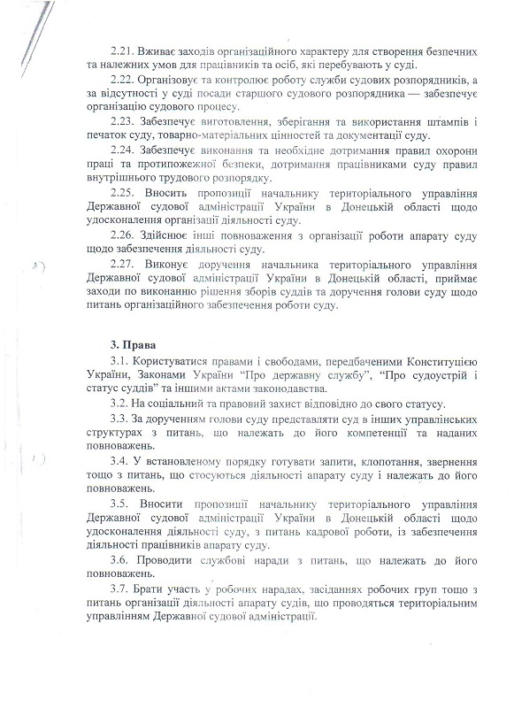 Перелік затверджених наказом голови суду документів, що містять службову інформацію